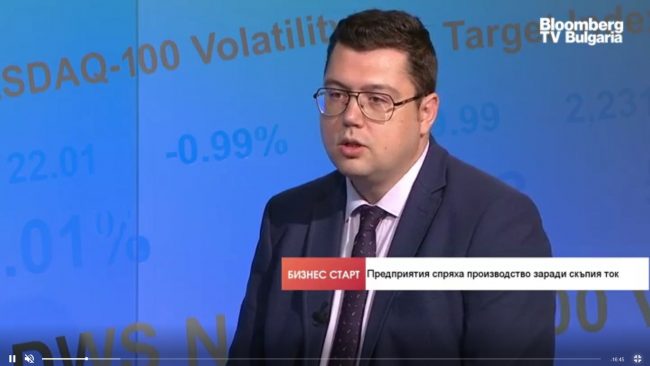 Изпълнителният директор на БФИЕК Ивайло Найденов пред BloombergTV за цените на енергията